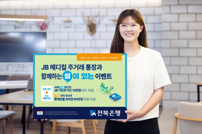 이미지 확대보기이번 이벤트는 의료급여 또는 카드매출대금 신규 입금과 지속 실적에 따라 다양한 혜택을 제공하는 것이 특징으로, 의료급여 또는 카드매출대금 신규 입금 고객에게 JB기프트 카드 10만 원을 각각 100% 지급하며, 2개월 연속 입금 시 롯데호텔 숙박권(60만 원 상당 총 6명, 월 2명)을 추첨을 통해 제공한다.