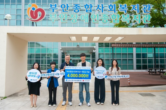 이미지 확대보기전북은행지역사랑봉사단은 직원들의 자발적 참여로 마련한 지역사랑성금으로 지난 4월 총 지원규모 6000만 원 상당의 ‘지역사랑성금 지원사업’ 공모를 실시했으며, 총 15개 기관을 선정하고 각 기관별 기부금 전달식을 실시하고 있다.