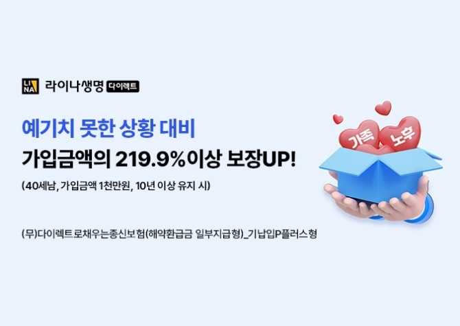 이미지 확대보기라이나생명은 ‘(무)다이렉트로채우는종신보험’을 판매한다고 18일 밝혔다.