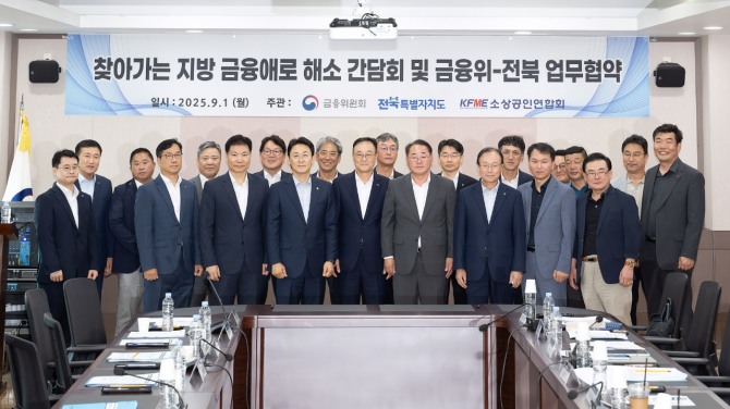 이미지 확대보기2일 금융권에 따르면 전북은행은 전북은행 백종일 은행장,권대영 금융위원회 부위원장, 김종훈 전북특별자치도 경제부지사, 송치영 소상공인연합회장 등이 참석한 간담회서 지역 소상공인을 위한 상생금융을 확대해 나가겠다고 했다. 백종일 전북은행장은 “올해 상반기 전북신용보증재단 특별출연을 통해 총 1582억 원의 자금을 지역 소상공인에게 공급했다”며, “앞으로도 지역 소상공인의 자금 공급 및 채무조정에 적극 나설 것”이라고 밝혔다.