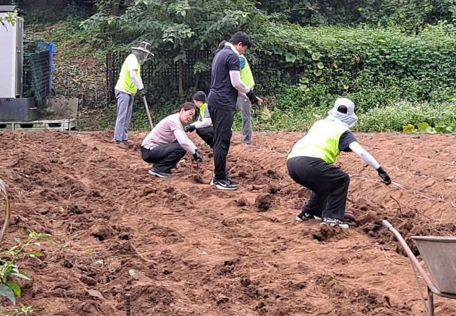 이미지 확대보기농협중앙회 조합감사위원회사무처와 부천시지부 직원들이 16일 경기도 부천시 오정구 관내 농가를 방문해 고구마를 직접 수확하고 있다. 사진=농협중앙회 농협중앙회 조합감사위원회사무처가 농가 일손 돕기에 나섰다.