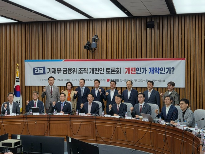 17일 금융권과 정치권에 따르면 이날 서울 여의도 국회 본관에서 ‘기획재정부와 금융위원회의 조직개편안’에 관한 긴급 토론회가 개최됐다.