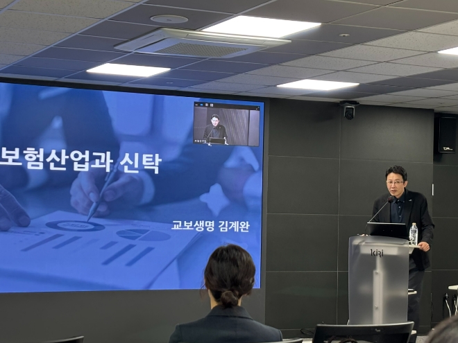 이미지 확대보기김계완 교보생명 종합자산관리팀장은 26일 서울 여의도 보험연구원에서 열린 ‘보험산업과 신탁’ 세미나에서 이같이 밝혔다.