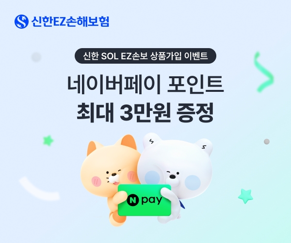 신한EZ손해보험이 연말까지 신규 보험가입 고객을 대상으로 네이버페이 포인트를 제공하는 이벤트를 한다.