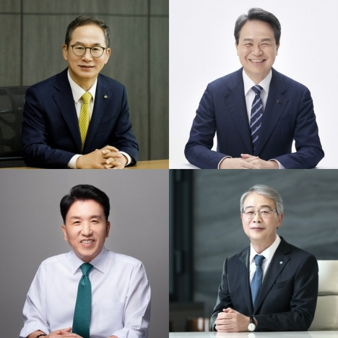 왼쪽 위부터 시계방향으로 양종희 KB금융그룹 회장, 진옥동 신한금융그룹 회장, 임종룡 우리금융그룹 회장, 함영주 하나금융그룹 회장. 사진=각 사이미지 확대보기