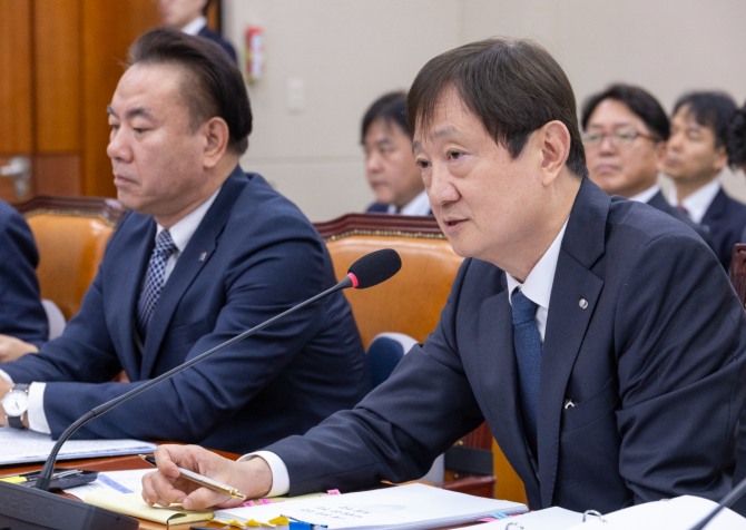 이미지 확대보기이날 정치권과 금융권 등에 따르면 정무위는 본래 상호금융권의 PF 부실을 집중 점검하기 위해 김인 회장과 김윤식 신협중앙회장을 증인으로 부르기로 했으나 여야 합의로 김 회장에 대한 증인 신청이 철회됐다. 이날 국감에는 김윤식 회장만 증인으로 참석했다.