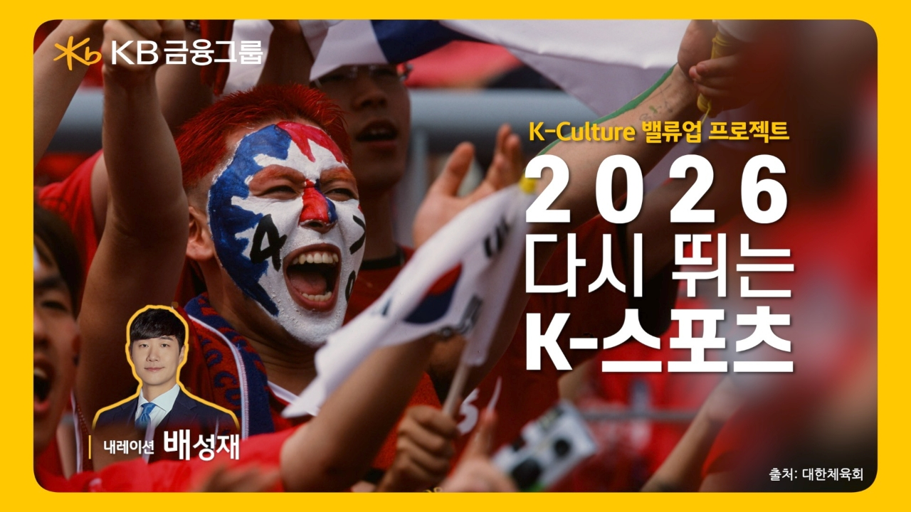 이미지 확대보기KB금융은 세계적인 스포츠 스타를 배출하며 전 세계에서 주목하고 있는 ‘K-스포츠’의 위상을 널리 알리고자 ‘2026 다시 뛰는 K-스포츠’ 영상을 제작했다. KB금융과 ‘한국 알림이’ 서경덕 성신여대 교수가 함께 기획하였으며, 대한민국 대표 스포츠 캐스터 배성재가 내레이션에 참여했다.