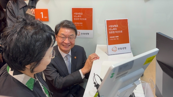 이날 이 위원장은 한화생명 권혁웅 부회장, 이경근 대표이사에게서 사망보험금 유동화 서비스 준비상황 및 한화생명의 계약 규모와 고객 안내 현황 등을 보고받았다.