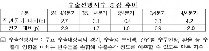 수은 관계자는 “미국 관세 부과 영향이 본격화되면서 미국 수출 감소는 이어지겠으나, 우리 수출의 최대 비중을 차지하는 반도체 수출 호조 등에 힘입어 4분기 수출은 전년동기 수준을 유지할 전망이다”면서 “미국과의 관세협상 타결로 수출액 감소 위험은 제한적일 것으로 보인다”고 했다.