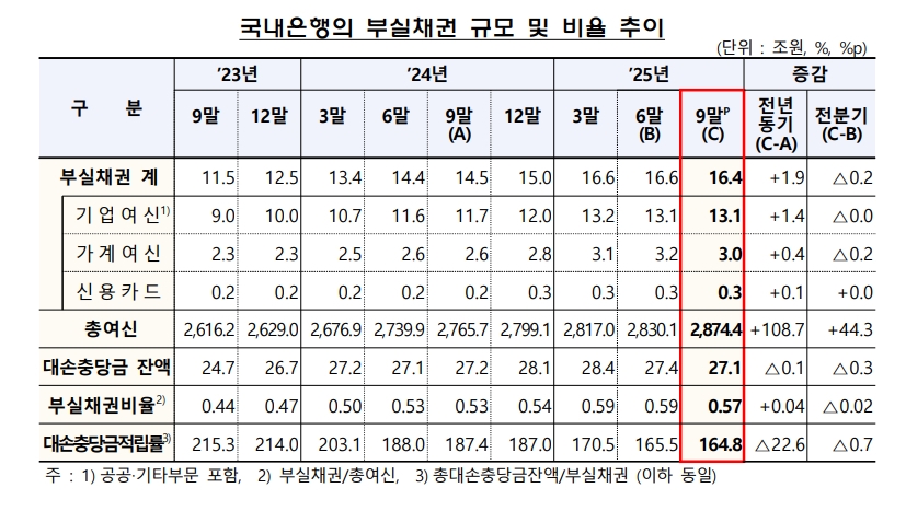 총 부실채권 16조4000억… 2000억 감소