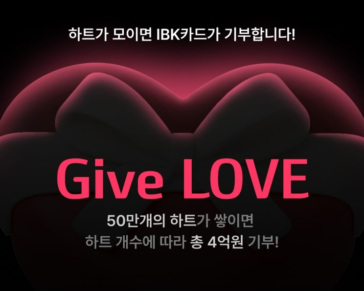 이미지 확대보기IBK기업은행은 IBK 카드앱에서 고객 참여를 통해 사회적 가치를 실현하는 기부 캠페인 ‘Give(기부) LOVE’를 오는 12월 31일까지 진행한다고 1일 밝혔다.