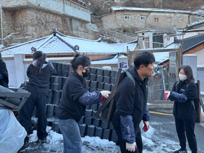 올해 봉사활동은 연탄과 난방유, 불법사금융 피해 예방 홍보물품 패키지 등을 홍제동 개미마을 취약가구에 전달하는 방식으로 진행됐다. 개미마을은 1970년대 형성된 노후 밀집주거지로, 난방 인프라가 부족해 겨울철 난방비 부담이 큰 지역이다.