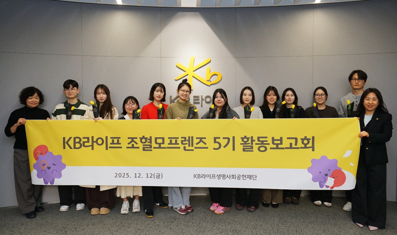 KB라이프생명사회공헌재단 관계자는 “조혈모프렌즈 5기는 청년들의 주도적 참여와 창의적인 아이디어가 어우러져 생명나눔의 가치를 효과적으로 확산시켰다”며 “앞으로도 생명을 존중하는 보험사로서 사회적 책임을 다하는 사회공헌 활동을 지속하겠다”고 말했다.