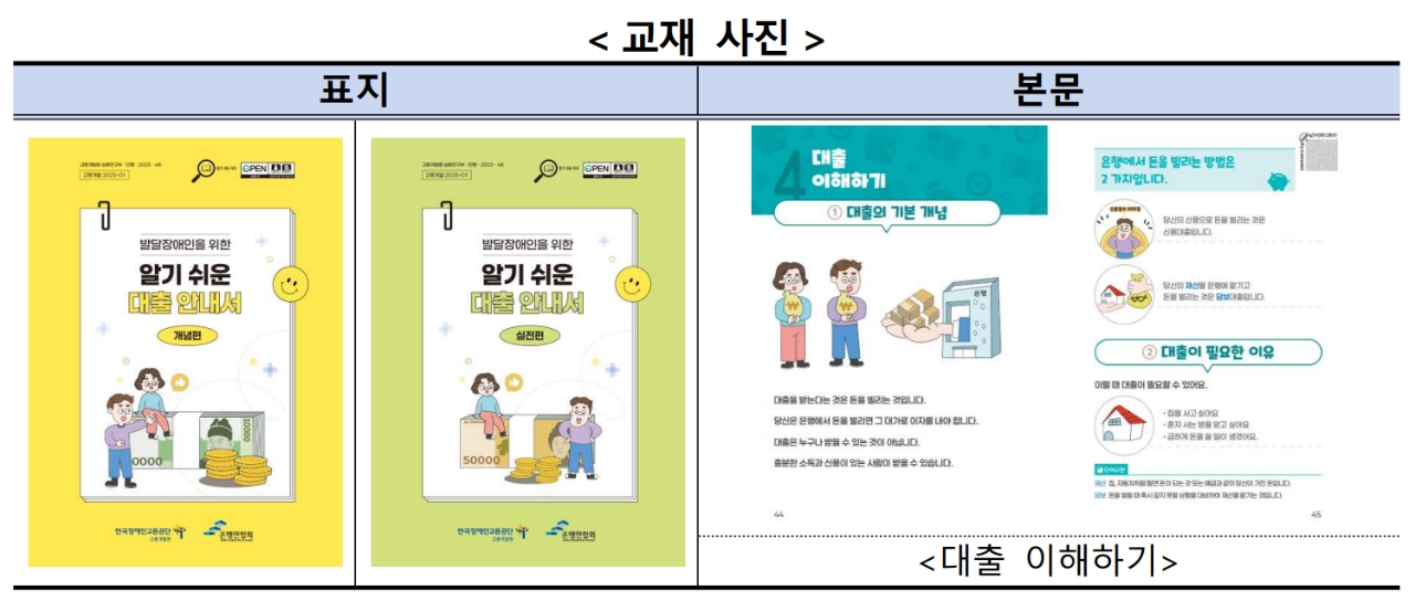 이 안내서는 발달장애인이 대출상품을 이해하고 상담 과정에서 원활하게 의사소통할 수 있도록 대출의 개념부터 실제 상담·계약 절차까지 쉽게 설명하고 있다. 특히 쉬운 단어와 표현, 그림 중심의 구성으로 금융용어·대출절차·계약서류에 대한 이해를 돕고 QR코드를 통해 관련 내용을 알기 쉽게 설명한 동영상 콘텐츠를 함께 제공하는 것이 특징이다.