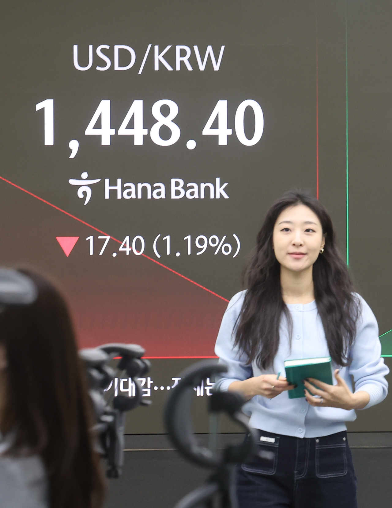 이날 서울 외환시장에서 원·달러 환율은 전 거래일 주간 종가(23일 오후 3시 30분 기준 1462.5원) 대비 19.7원 내린 1446.1원으로 출발해 25.2원 떨어진 1440.6원에 주간 거래를 마쳤다. 환율은 1437.4~1449.9원에서 등락하면서 장중 한때 1430원대에 진입하기도 했다.