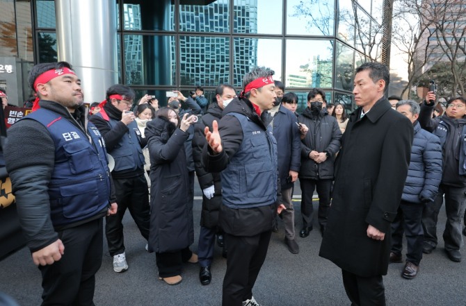 이미지 확대보기기업은행 노조는 문재인 정부였던 지난 2020년 1월 당시 윤종원 청와대 경제수석이 기업은행장으로 임명되자 '낙하산 인사'라며 한 달 가까이 윤 행장에 대한 출근 저지 투쟁을 이어갔다. 윤 전 행장은 금융권에서 최장기간 출근을 저지당한 은행장이라는 불명예를 얻었다.