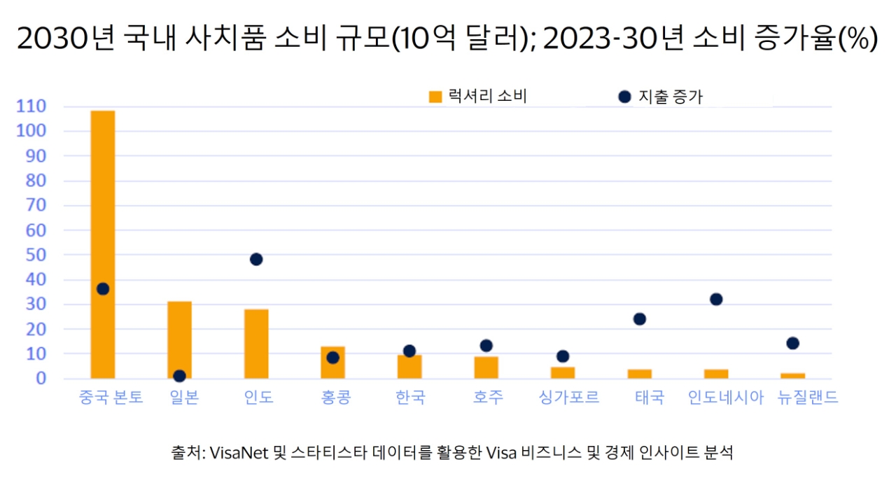 이미지 확대보기비자는 5일 ‘아시아태평양 지역 럭셔리 소비자 분석’ 보고서를 통해 아태 지역의 소득 증가와 함께 럭셔리 제품 구매 규모와 소비 유형이 빠르게 확대되고 있다고 밝혔다. 다만 각국의 경제 수준과 문화적 성향이 상이해, 단일 전략보다는 국가별 맞춤 접근이 필요하다고 강조했다.