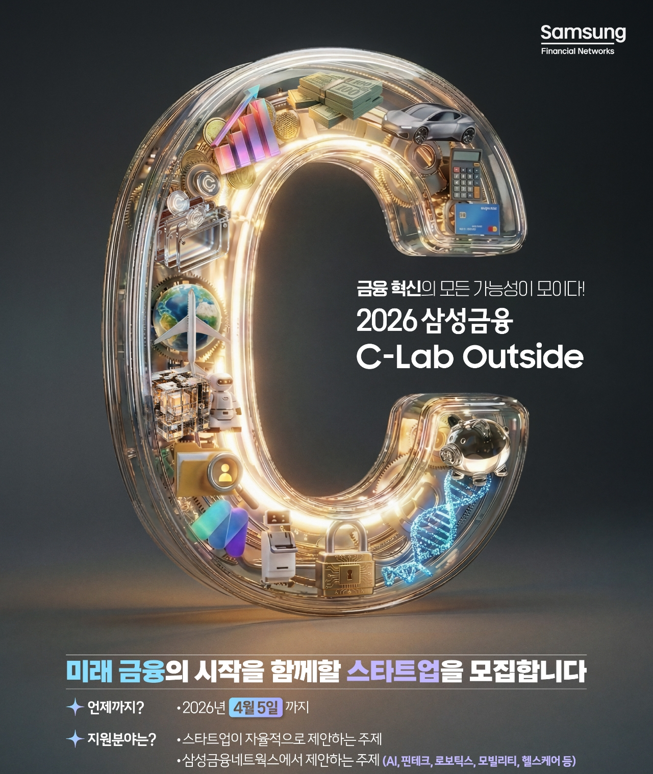 삼성생명·화재·카드·증권 등 삼성금융네트웍스는 삼성벤처투자와 공동으로 ‘2026 삼성그융 C-랩 아웃사이드’를 운영한다고 3일 밝혔다.