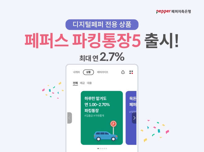이미지 확대보기페퍼저축은행은 ‘페퍼스 파킹통장5’를 30일 출시했다.