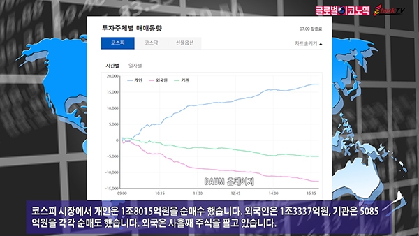 코스피 시장에서 개인은 1조8015억원을 순매수 했습니다. 외국인은 1조3337억원, 기관은 5085억원을 각각 순매도 했습니다. 외국은 사흘째 주식을 팔고 있습니다.