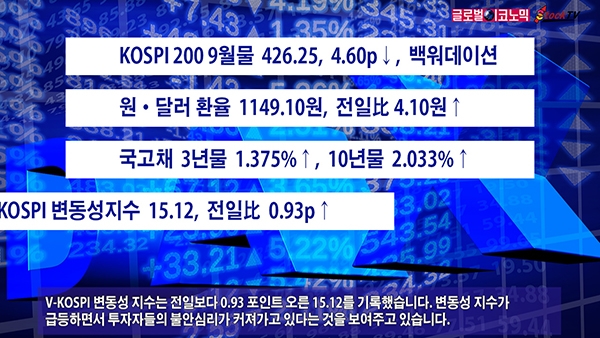 V-KOSPI 변동성 지수는 전일보다 0.93 포인트 오른 15.12를 기록했습니다. 변동성 지수가 급등하면서 투자자들의 불안심리가 커져가고 있다는 것을 보여주고 있습니다.