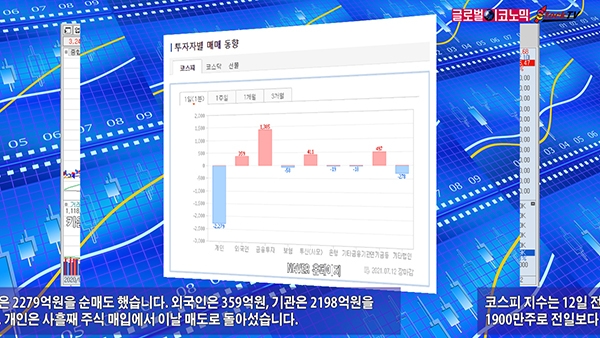 코스피 시장에서 개인은 2279억원을 순매도 했습니다. 외국인은 359억원, 기관은 2198억원을 각각 순매수 했습니다. 개인은 사흘째 주식 매입에서 이날 매도로 돌아섰습니다.