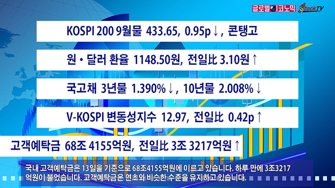 KOSPI 200 9월물 선물지수는 하루 만에 또다시 콘탱고로 전환됐습니다. 14일 선물지수는 전일보다 0.95 포인트 하락한 433.65로 장을 마감했습니다. 시장 베이시스는 0.08입니다.