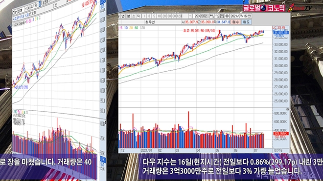 다우 지수는 16일(현지시간) 전일보다 0.86%(299.17p) 내린 3만4687.85로 장을 마감했습니다. 거래량은 3억3000만주로 전일보다 3% 가량 늘었습니다.