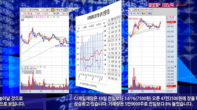 CJ제일제당은 19일 전일보다 1.61%(7500원) 오른 47만2500원에 장을 마감했습니다. 6거래일째 상승하고 있습니다. 거래량은 5만9000주로 전일보다 8% 늘었습니다.