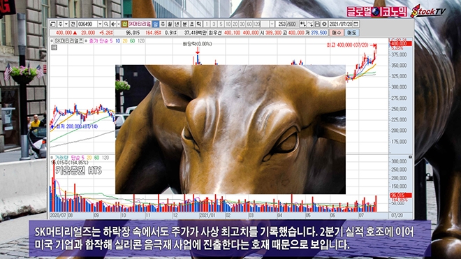 SK머티리얼즈 주가는 20일 전일보다 5.26%(2만원) 오른 40만원에 장을 마감했습니다. 종가가 사상 최고가이기도 합니다. 거래량은 9만6000주로 전일보다 65% 가량 급증했습니다.