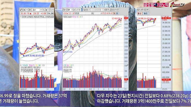 다우 지수는 23일(현지시간) 전일보다 0.68%(238.20p) 상승한 3만5061.55로 장을 마감했습니다. 거래량은 3억1400만주로 전일보다 7% 가량 늘었습니다.
