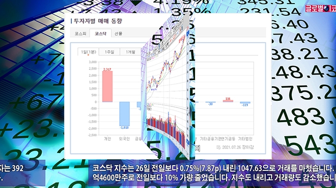 코스닥 시장은 장 초반 상승 흐름을 보였으나 후반들어 급락하면서 불안한 투자심리를 나타냈습니다. 중국 증시가 빅테크 기업 규제로 출렁거리면서 투자심리가 냉각된 것으로 보입니다.