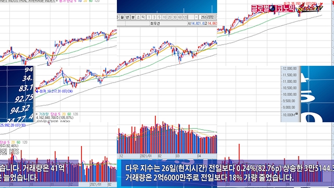 다우 지수는 26일(현지시간) 전일보다 0.24%(82.76p) 상승한 3만5144.31로 장을 마감했습니다. 거래량은 2억6000만주로 전일보다 18% 가량 줄었습니다.