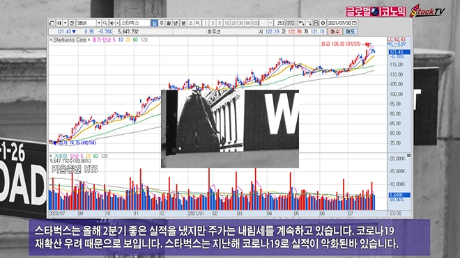 스타벅스는 올해 2분기 좋은 실적을 냈지만 주가는 내림세를 계속하고 있습니다. 코로나19 재확산 우려 때문으로 보입니다. 스타벅스는 지난해 코로나19로 실적이 악화된바 있습니다.