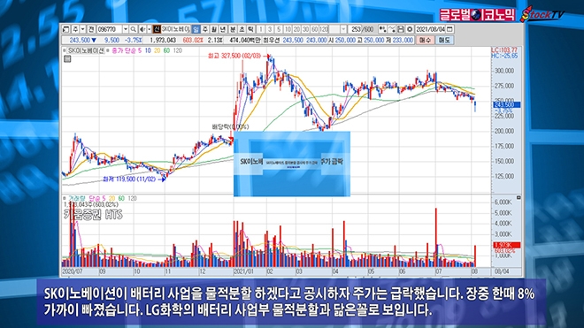 SK이노베이션의 주가는 4일 전일보다 3.75%(9500원) 내린 24만3500원에 장을 마감했습니다. 거래량은 197만3000주로 전일보다 6배 가량 급증했습니다.