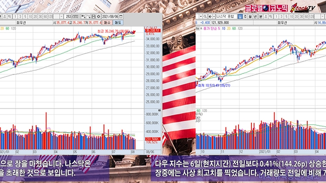 다우 지수는 6일(현지시간) 전일보다 0.41%(144.26p) 상승한 3만5208.51로 장을 마감했습니다. 장중에는 사상 최고치를 찍었습니다. 거래량도 전일에 비해 7% 가량 늘었습니다.