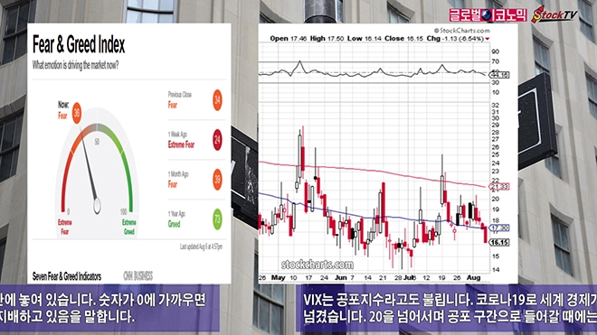 VIX는 공포지수라고도 불립니다. 코로나19로 세계 경제가 극도로 불안했을 때에는 80을 넘겼습니다. 20을 넘어서며 공포 구간으로 들어갈 때에는 매수를 생각해야 합니다.