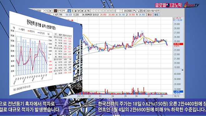 한국전력의 주가는 18일 0.62%(150원) 오른 2만4400원에 장을 마감했습니다. 이날 주가는 연초인 1월 4일의 2만6900원에 비해 9% 하락한 수준입니다. 거래량은 계속해서 줄고 있습니다.