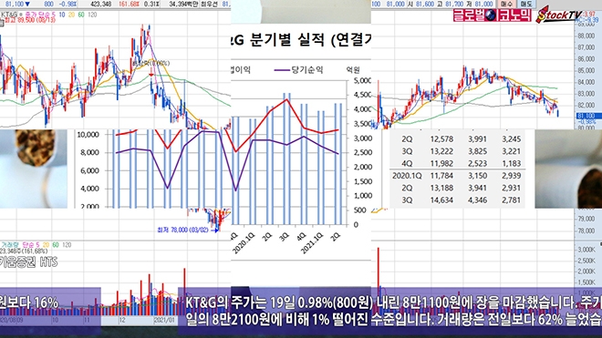 KT&G의 주가는 19일 0.98%(800원) 내린 8만1100원에 장을 마감했습니다. 주가는 연초인 1월 4일의 8만2100원에 비해 1% 떨어진 수준입니다. 거래량은 전일보다 62% 늘었습니다.