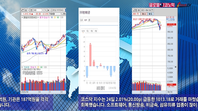 코스닥 지수는 24일 2.01%(20.00p) 급등한 1013.18로 거래를 마쳤습니다. 나흘만에 1000선을 회복했습니다. 소프트웨어, 통신방송, 비금속, 섬유의류 업종이 많이 올랐습니다.
