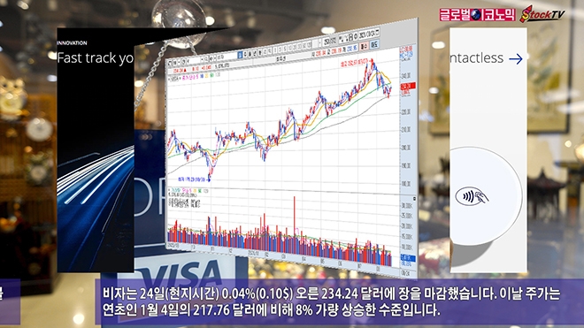 비자는 24일(현지시간) 0.04%(0.10$) 오른 234.24 달러에 장을 마감했습니다. 이날 주가는 연초인 1월 4일의 217.76 달러에 비해 8% 가량 상승한 수준입니다.