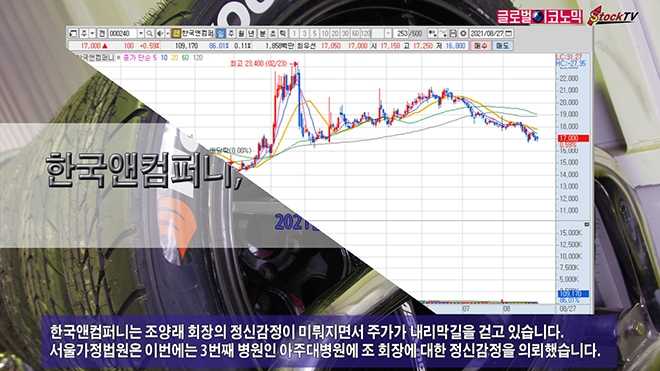 한국앤컴퍼니의 주가는 27일 0.59%(100원) 오른 1만7000원에 장을 마감했습니다. 이날 주가는 경영권 분쟁으로 지난 2월 고점을 찍었던 2만3400원에 비해 27% 하락한 수준입니다.