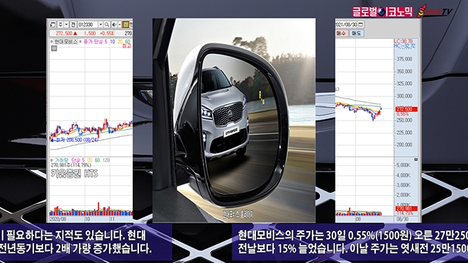 현대모비스의 주가는 30일 0.55%(1500원) 오른 27만2500원에 장을 마감했습니다. 거래량은 전날보다 15% 늘었습니다. 이날 주가는 엿새전 25만1500원에 비해 8% 넘게 상승했습니다.