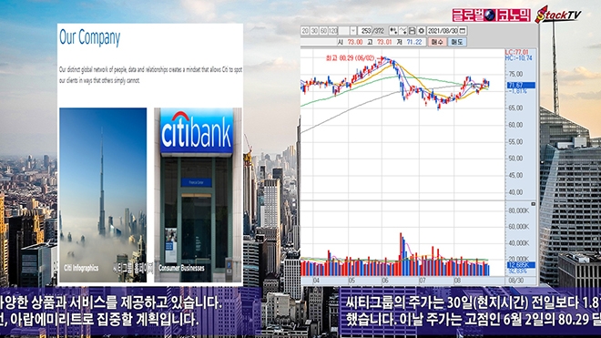 씨티그룹의 주가는 30일(현지시간) 전일보다 1.81%(1.32$) 내린 71.67 달러에 장을 마감했습니다. 이날 주가는 고점인 6월 2일의 80.29 달러에 비해 11% 가량 떨어진 수준입니다.