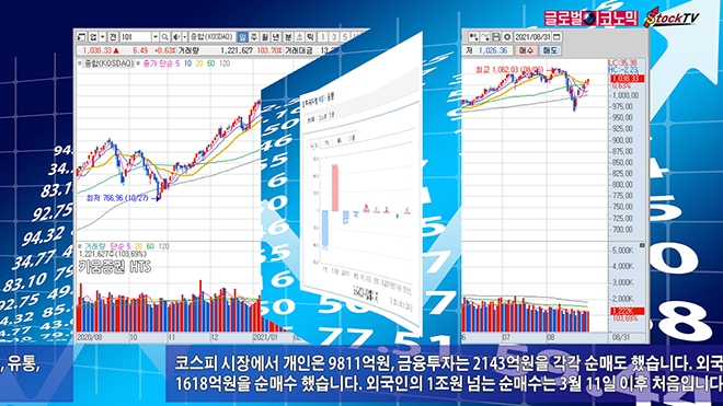 코스피 시장에서 개인은 9811억원, 금융투자는 2143억원을 각각 순매도 했습니다. 외국인은 1조1618억원을 순매수 했습니다. 외국인의 1조원 넘는 순매수는 3월 11일 이후 처음입니다.