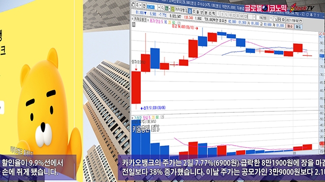 카카오뱅크의 주가는 2일 7.77%(6900원) 급락한 8만1900원에 장을 마감했습니다. 거래량은 전일보다 38% 증가했습니다. 이날 주가는 공모가인 3만9000원보다 2.1배 오른 수준입니다.