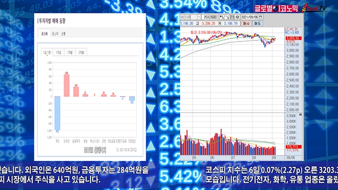 코스피 지수는 6일 0.07%(2.27p) 오른 3203.33으로 거래를 마쳤습니다. 3200선을 겨우 버텨내는 모습입니다. 전기전자, 화학, 유통 업종은 올랐습니다. 금융업과 의약품은 내렸습니다.