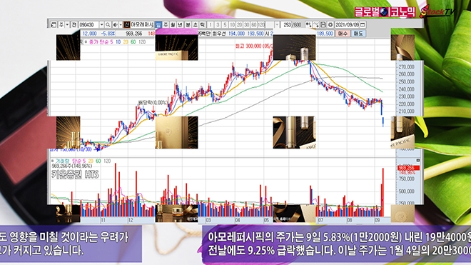 아모레퍼시픽의 주가는 9일 5.83%(1만2000원) 내린 19만4000원에 장을 마감했습니다. 전날에도 9.25% 급락했습니다. 이날 주가는 1월 4일의 20만3000원보다 4% 하락한 수준입니다.