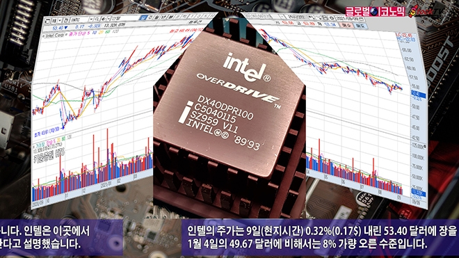 인텔의 주가는 9일(현지시간) 0.32%(0.17$) 내린 53.40 달러에 장을 마감했습니다. 인텔의 주가는 1월 4일의 49.67 달러에 비해서는 8% 가량 오른 수준입니다.