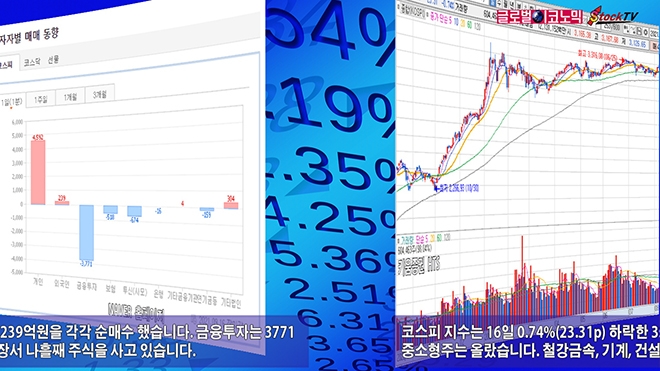 코스피 지수는 16일 0.74%(23.31p) 하락한 3130.09로 거래를 마쳤습니다. 대형주는 내리고 중소형주는 올랐습니다. 철강금속, 기계, 건설업은 상승했고 음식료, 화학은 하락했습니다.